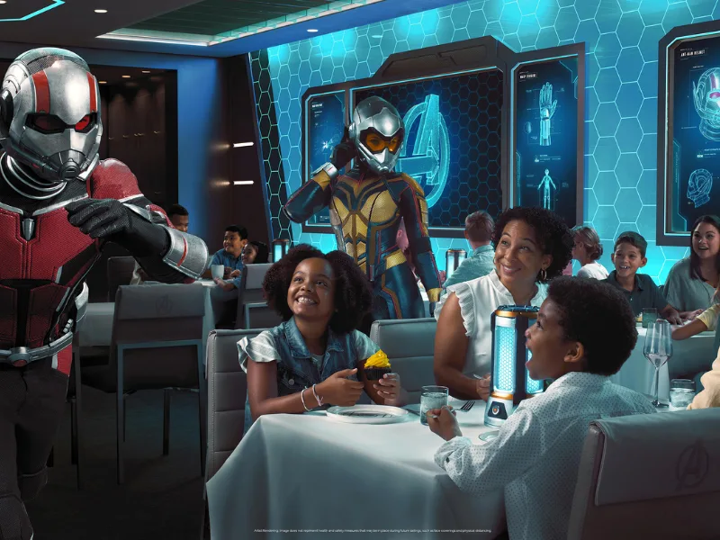 Disney Cruise Line is upping the “ant-e” on immersive family dining with the debut of “Avengers: Quantum Encounter” at Worlds of Marvel restaurant aboard the Disney Wish. Premiering in summer 2022, this all-new cinematic dining adventure will assemble some of Earth’s Mightiest — and tiniest — Super Heroes in a larger-than-life showcase of revolutionary quantum technology and world-class cuisine.