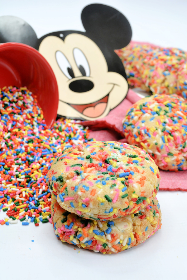 These giant Sprinkle Funfetti Cookies are inspired by Gideon's Bakehouse at Disney Springs. 1/2 pound cookies loaded with sprinkles and white chocolate chips!