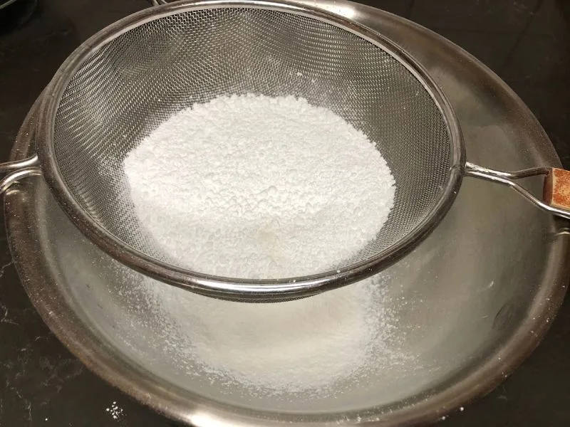 - Sift the flour, confectioners' sugar, and salt into a large bowl.